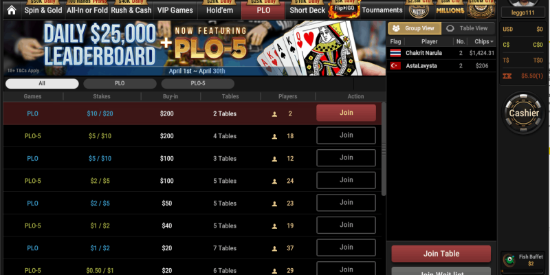 A lot of promotional money is distributed via the leaderboards daily. The 4-card PLO leaderboards have a $25k prize pool distributed per different stakes. A similar amount is spent on the 5- and 6-card PLO leaderboards and in the Rush & Cash leaderboards over $20k is awarded.