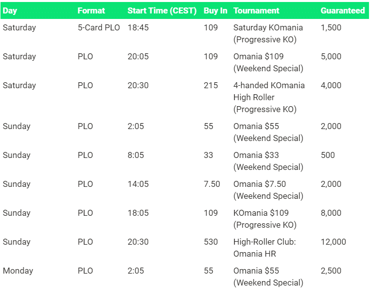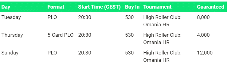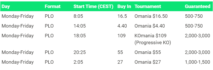 The guaranteed Pot Limit Omaha tournaments are called Omania tournaments.
