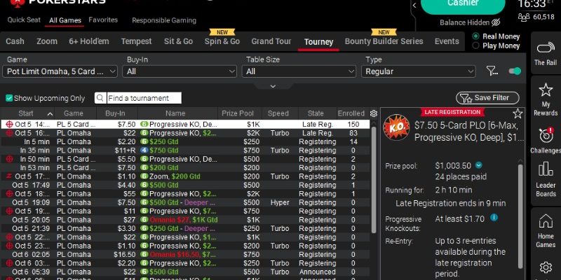 PokerStars is the home to play different variants of poker from Stud, Razz, drawing games like Badugi, HORSE and other mixed games, as well as Limit and No Limit Hold’em. The Omaha games that are being offered are Hi/Lo, Courchevel and 4, 5 and 6-card Pot Limit Omaha.